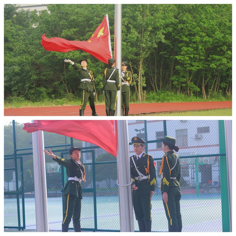 立夏日暖,万象更新。7点20分,英姿飒爽的国旗护卫队迈着整齐、铿锵的步伐,护送五星红旗走向升旗台。随着国旗的冉冉升起,全体师生肃立致敬,齐唱国歌,嘹亮的歌声拉开了“国旗下的思政课”的序幕。
